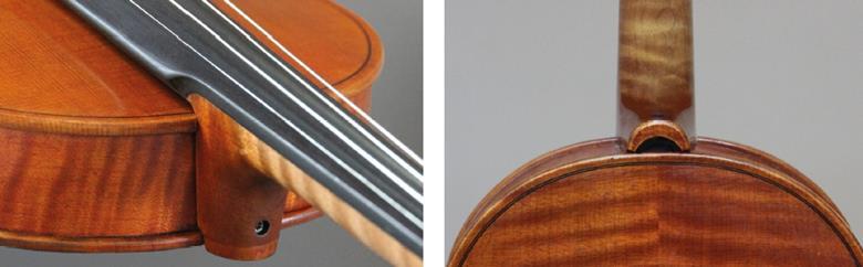 研究表明,对称在人脸中很有吸引力——而且大多数人脸都有一定程度的不对称。你可以说巴洛克工艺使轮廓“人性化”,赋予它一种完美对称的乐器可能缺乏的魅力。但即使没有这些额外的偏差,也不会有不育的危险。由于木块雕刻的不规则性、侧板的弯曲、轮廓的描摹和木材的形状,在制作过程中会产生小的不对称。老意大利人煞费苦心地使他们的形式对称,我们不知道他们认为与过程相关的不对称是福还是祸。我们也不知道有时在Guarneri’del Gesù’的乐器中看到的极端不对称是否是自由表达的艺术冲动的结果,或与失败的能力进行令人沮丧的斗争。我们所知道的是,巴洛克琴颈对琴身的外观有影响,而现代琴颈则没有。抛开美学不谈,巴洛克工艺的实际优势是指板、f孔和琴桥尽管轮廓扭曲,但仍保持居中。后来通过调整指板下侧的角度来解决投影问题。